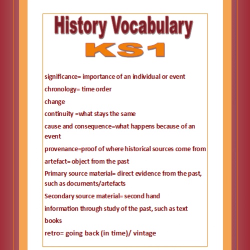 We want to make History exciting and relevant, encouraging children to be history detectives and time travellers, which will evoke both curiosity and open minds. Lessons will be practical and sensory and discussion and debate will widen vocabulary and knowledge.
